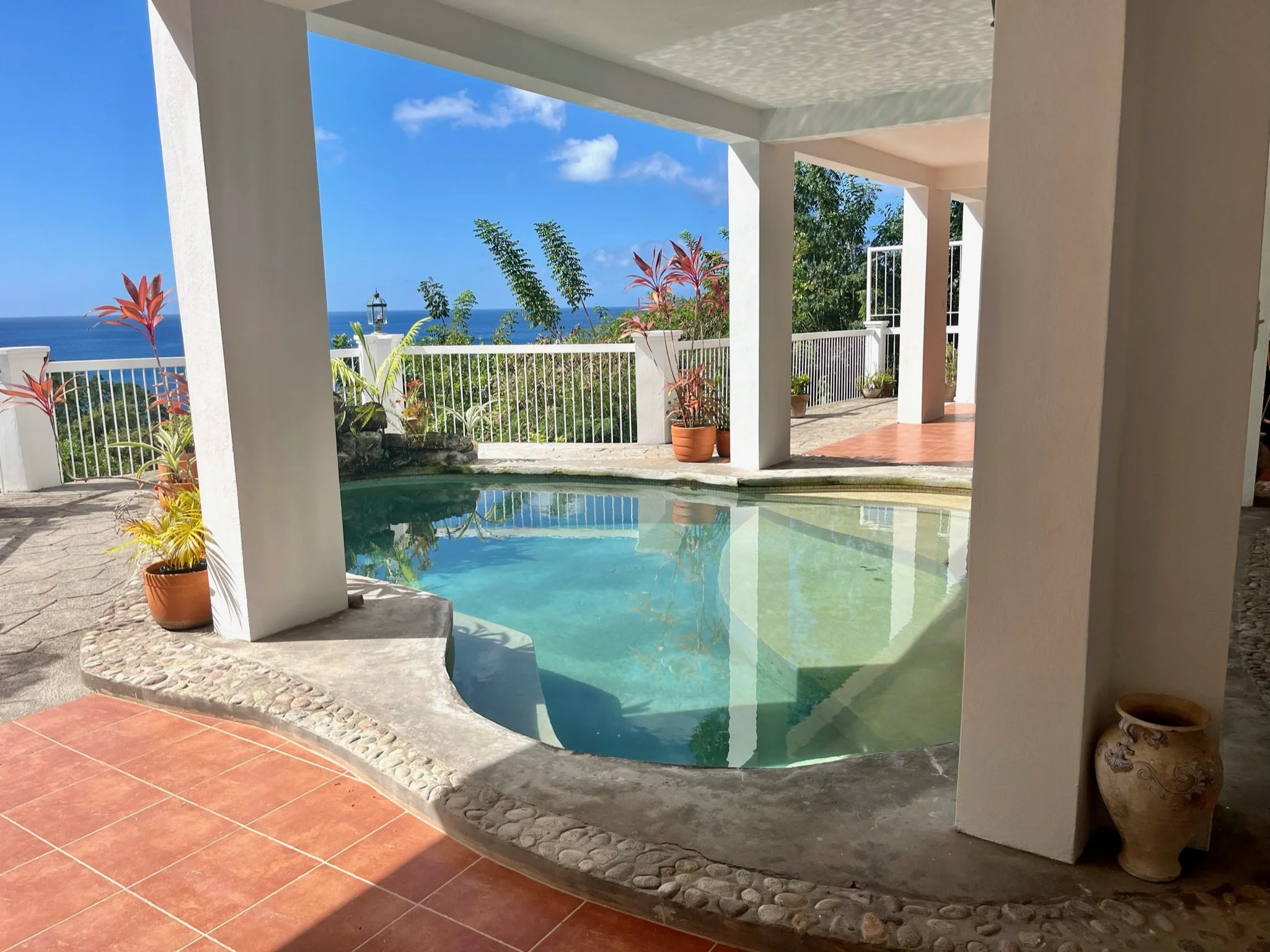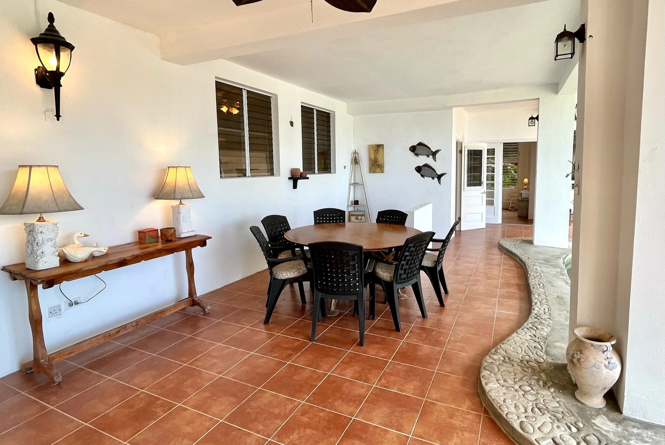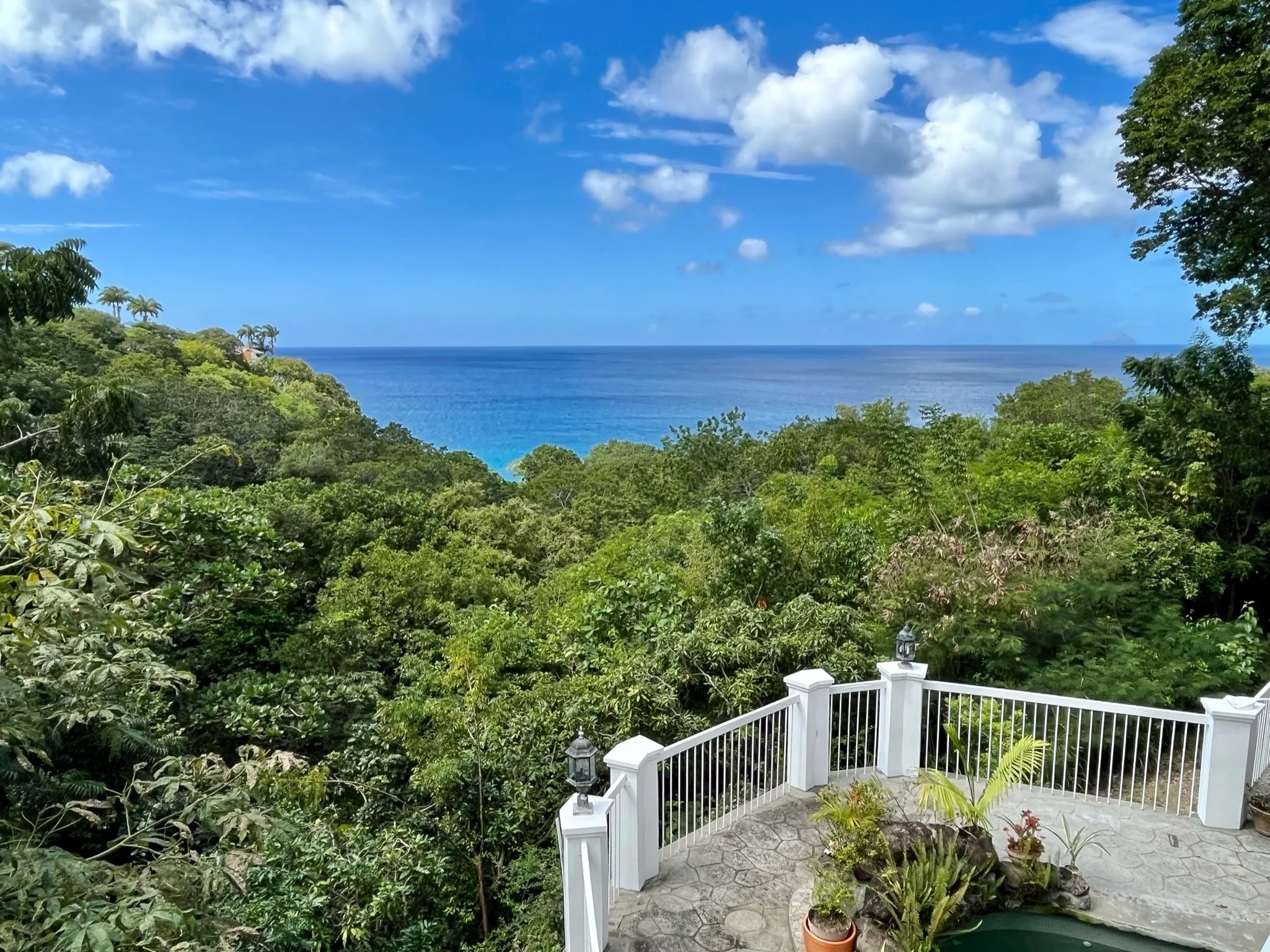 Wind your way down twisty Woodlands Beach Road towards the main beach access until you reach a small uphill section of roadway called Kent Lane. Nestled serenely at the end of this quiet lane sits lovely Mango Grove. The home sits nicely on the site at an angle designed to make the best of your Caribbean Sea view.